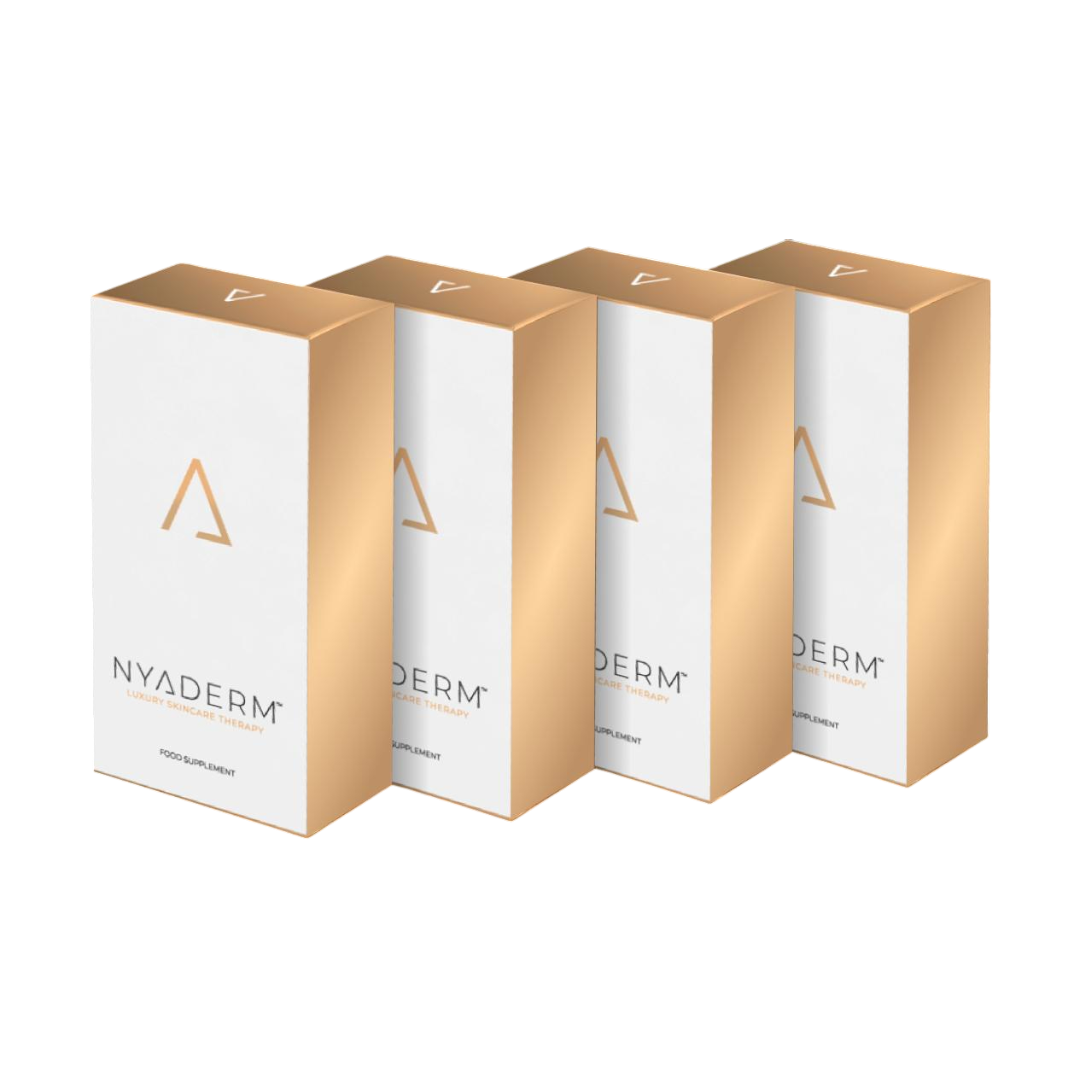 Pro dosažení mladistvě vypadající pleti je nezbytná nepřetržitá konzumace NYADERM® Anti-aging Drink po dobu minimálně 8 týdnů. Tomuto časovému úseku odpovídá Pečující kúra NYADERM®, která cílí na zlepšení elasticity, pevnosti a struktury povrchu pokožky i výraznou redukci vrásek.